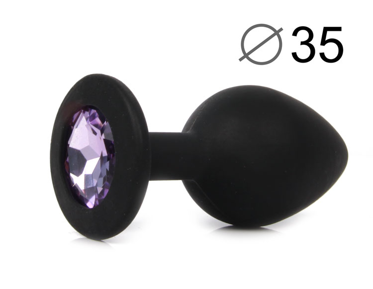 ВТУЛКА АНАЛЬНАЯ, L 80 мм D 35 мм, чёрная, цвет кристалла светло-фиолетовый, силикон, арт. SF-70501-15