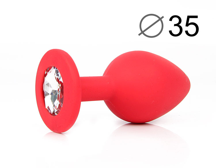 ВТУЛКА АНАЛЬНАЯ, L 80 мм D 35 мм, красная, цвет кристалла бесцветный, силикон, арт. SF-70601-01